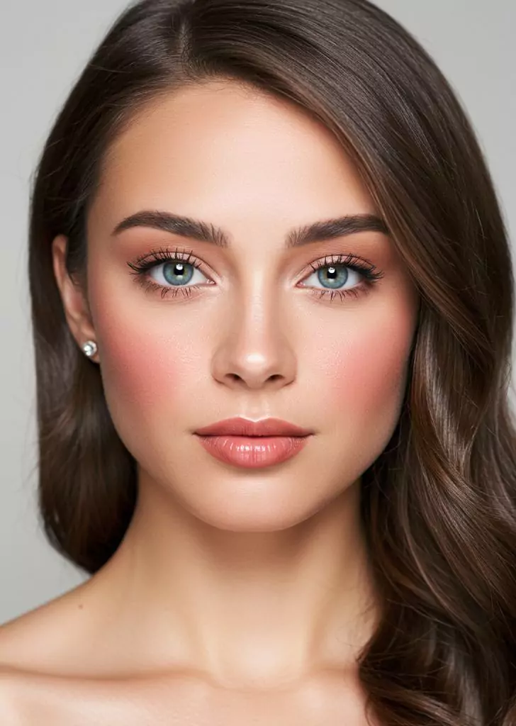 Apply a noticeable amount of blush to the apples of your cheeks and carry it slightly up toward the temples. This technique gives your face more warmth, youthfulness, and dimension.