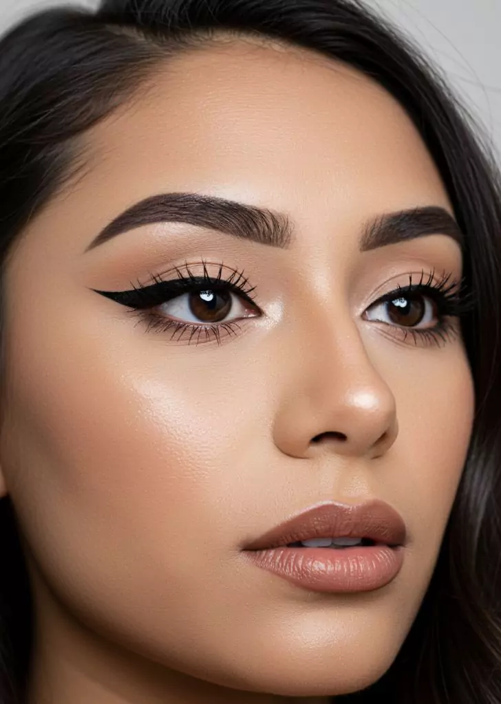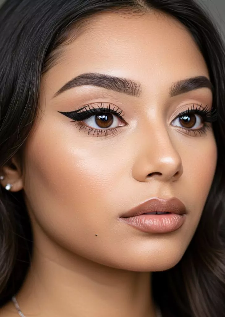 A small flick of eyeliner at the outer corner creates a flirty and stylish touch without needing perfect symmetry or angle precision. It gives your eyes a lifted look and pairs beautifully with both nude and bold lips.
