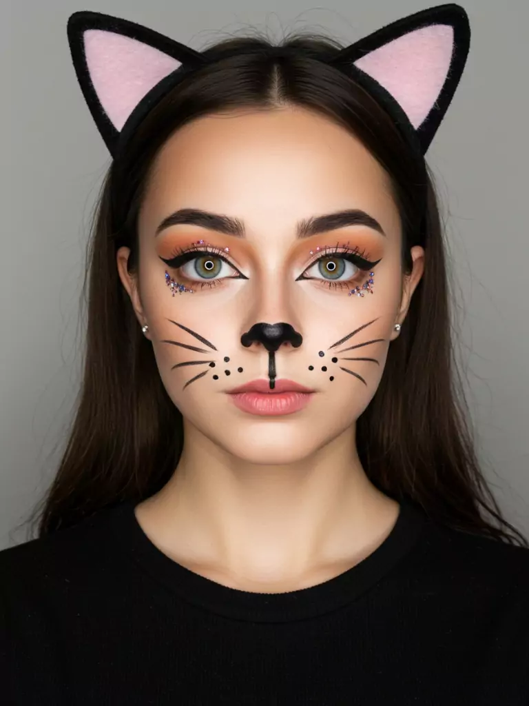 Add glitter or rhinestones near the eyes if you want a glamorous version. Pair it with cat ears and you’ll be both adorable and fierce.