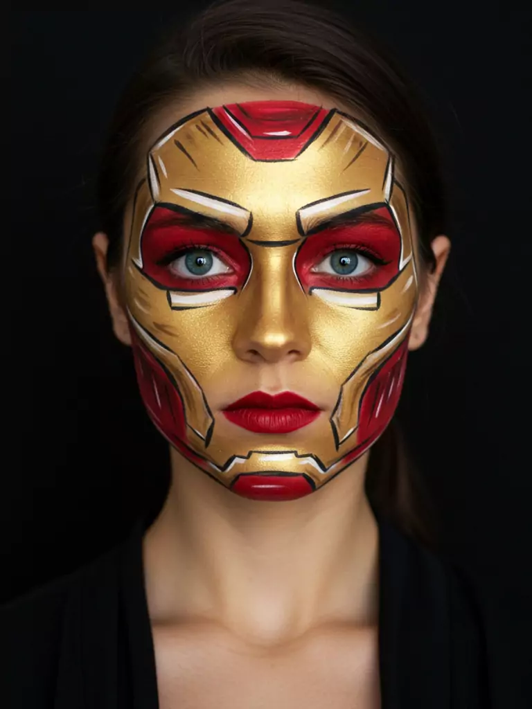 Not into horror? Try a superhero face paint mask. You can design Iron Man’s golden mask, Wonder Woman’s crown, or even Captain Marvel’s star.