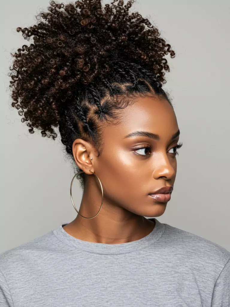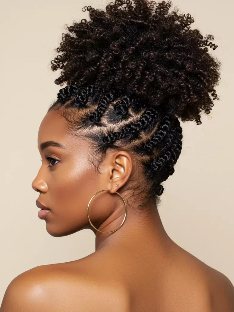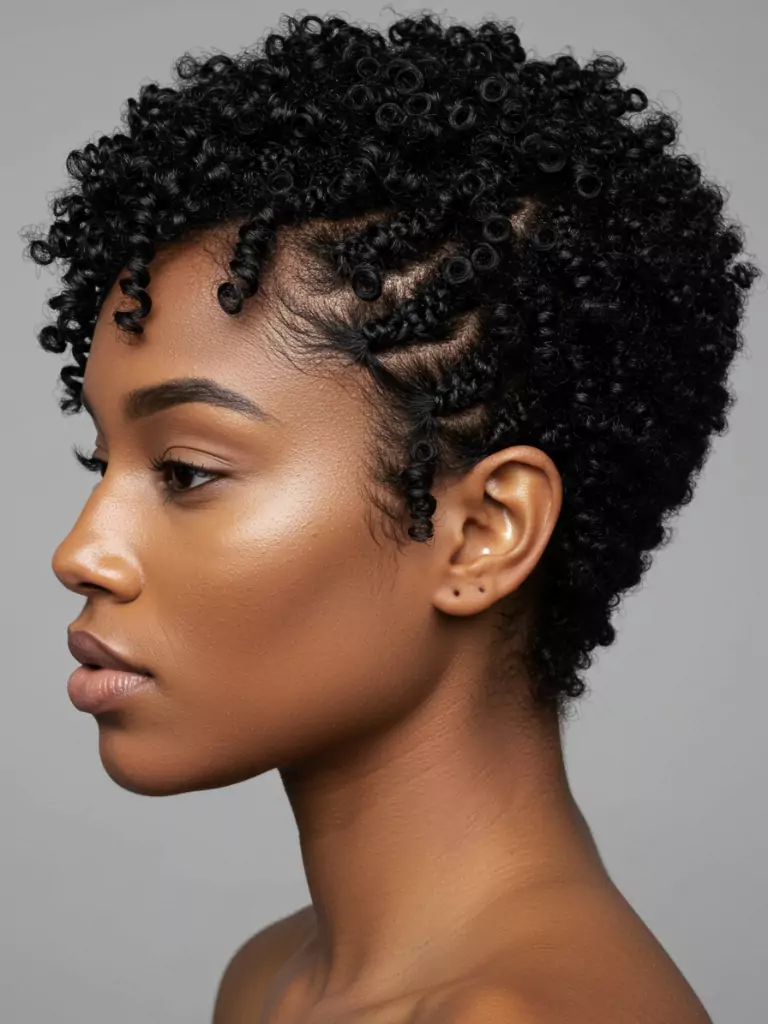They’re also beginner-friendly, so even if you’re not used to styling 4C hair, you can achieve this with a bit of practice. The style gives short hair structure and elegance in one.