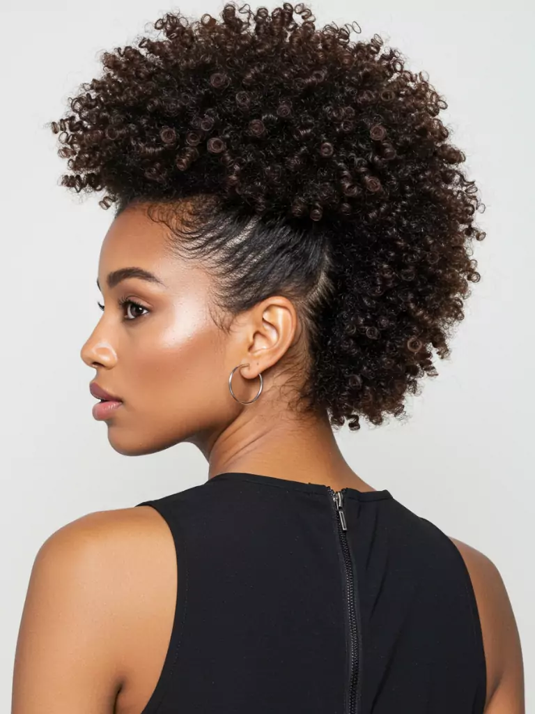 The contrast gives the illusion of a mohawk without shaving anything. Define the coils in the middle for extra drama. It’s playful, fun, and perfect if you like experimenting with statement looks.