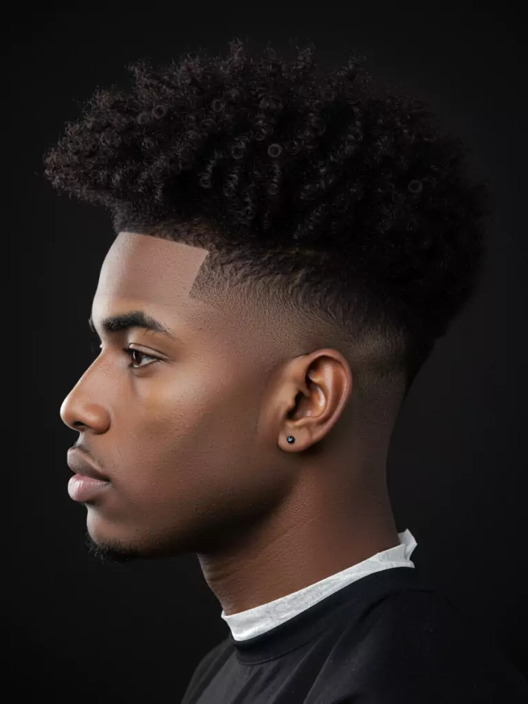 This style is bold and fashion-forward. Ask your barber or stylist for a fade on the sides and back, leaving the top longer to show off your coils. Style the top with curl cream or gel for extra definition.