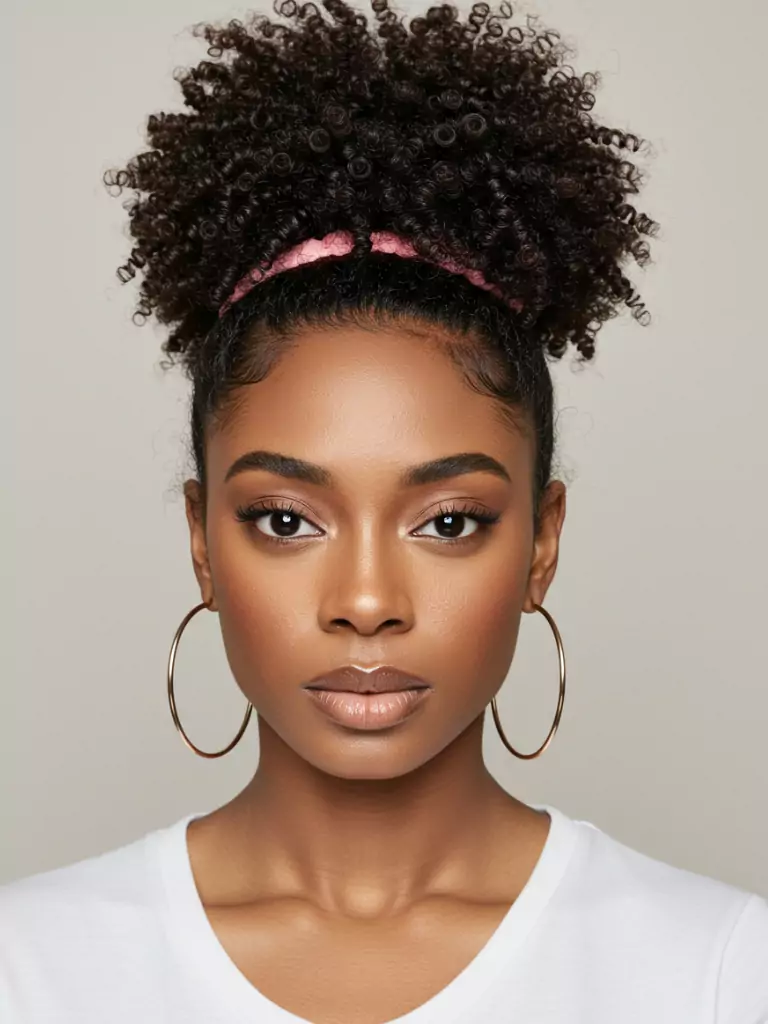 A puff is one of the simplest yet cutest styles for short 4C hair. After washing, define your curls, then gather them into a puff at the top or back of your head using a stretchy band.