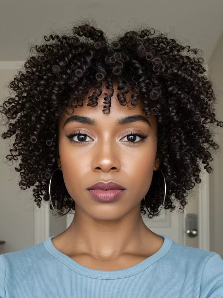 This creates a cute, youthful vibe while still keeping the wash-and-go simplicity. Moisturize well and define the bangs with a little curl cream so they stay neat.