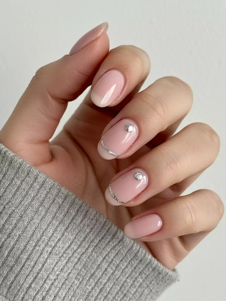 Minimalist nail art is trending for good reason it’s simple yet stylish. Start with a nude-pink base and add a single silver dot at the cuticle of each nail.