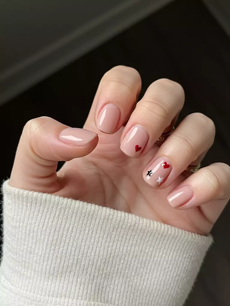 Sometimes less really is more. A nude or neutral base with one or two tiny heart or star accents adds a playful touch without making your nails feel busy.